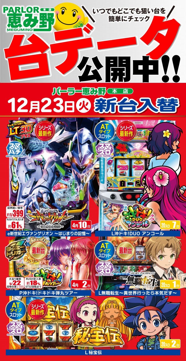 本日新台入替★最新台含む新台5機種導入予定★朝9時開店★