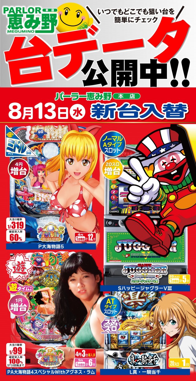 明日朝9時開店★深夜0時45分まで延長営業★台データ公開中♪