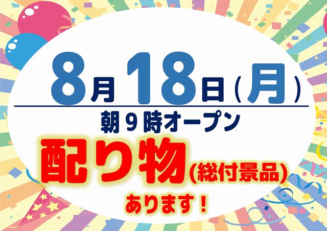 本日朝9時開店★配り物あります!(総付景品配布予定)
