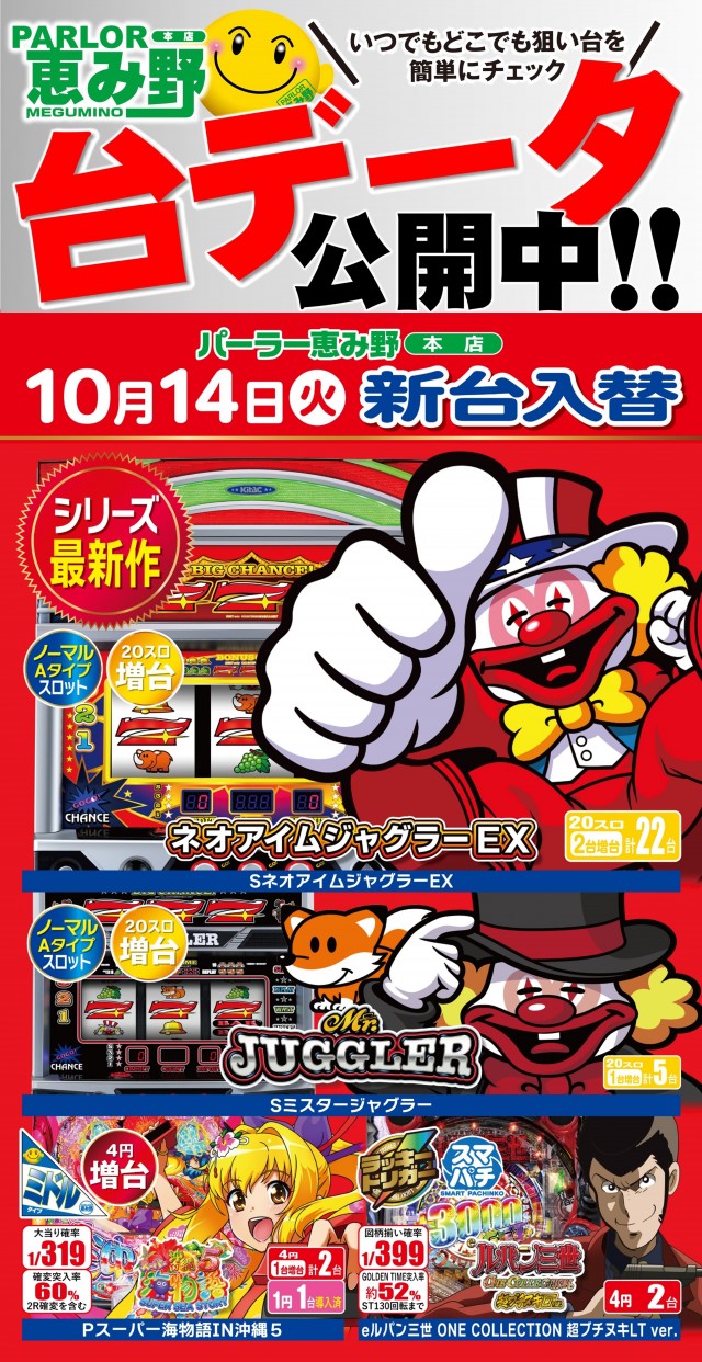 明日朝9時開店★今週の新台4機種導入済★台データ公開中♪