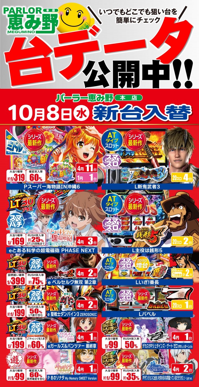 本日朝9時開店★導入済の新台&台データも要チェック♪