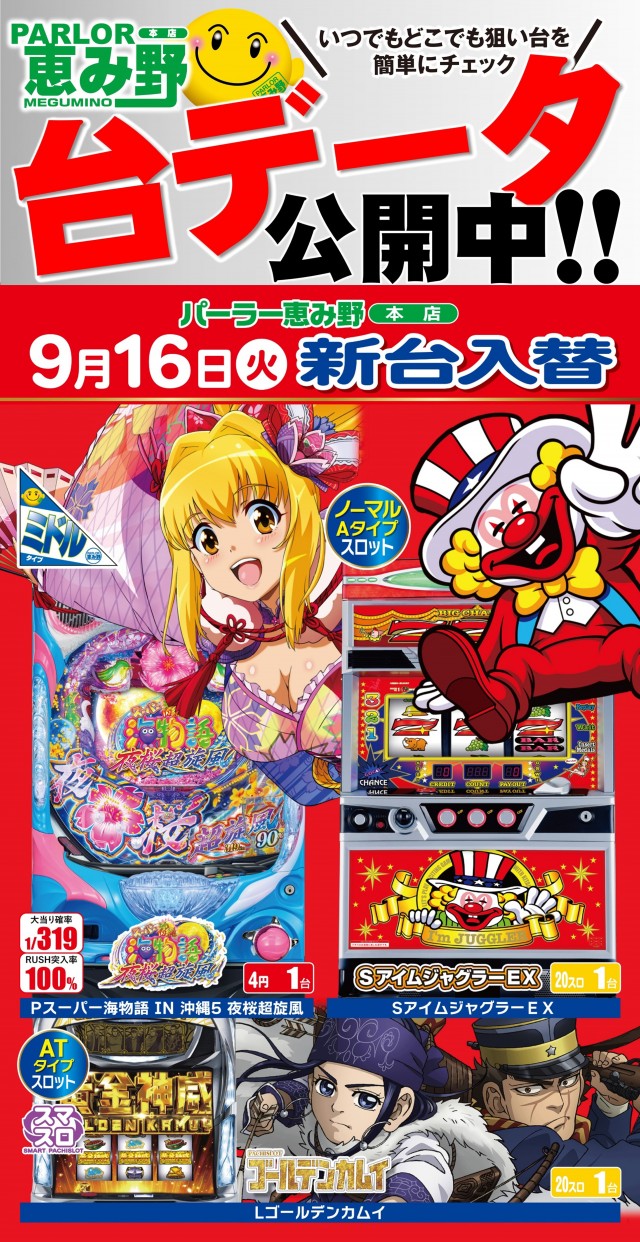 明日朝9時開店★今週の新台3機種導入済★台データ公開中♪