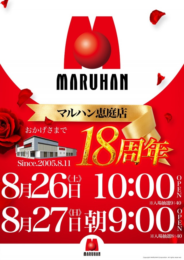 【恵庭店】 7日(木)朝9時開店 入場抽選8:40締切