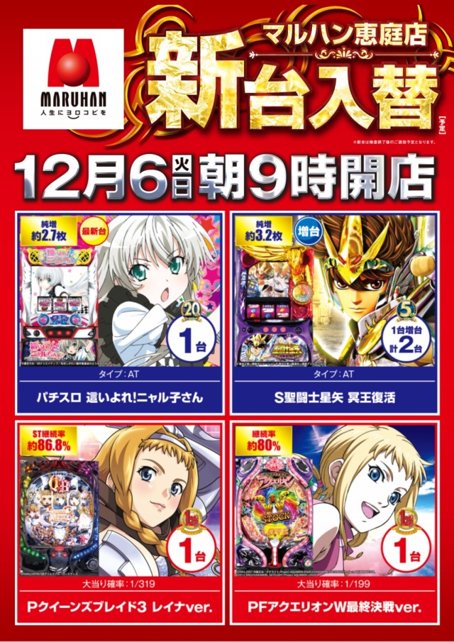 12月6日(火)朝9時開店 ★新台入替★
