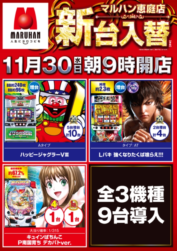 11月30日(水)★新台入替★朝9時開店