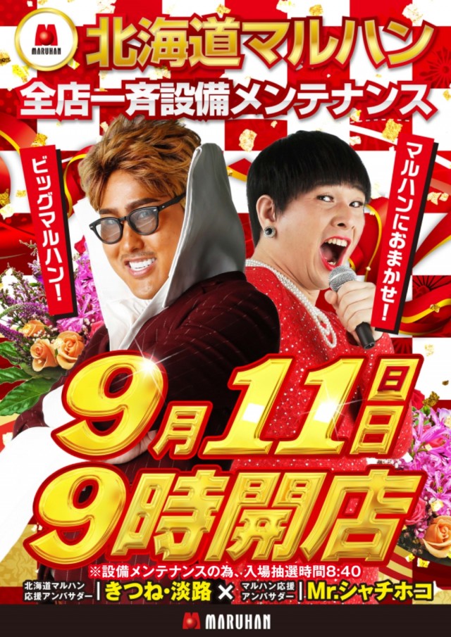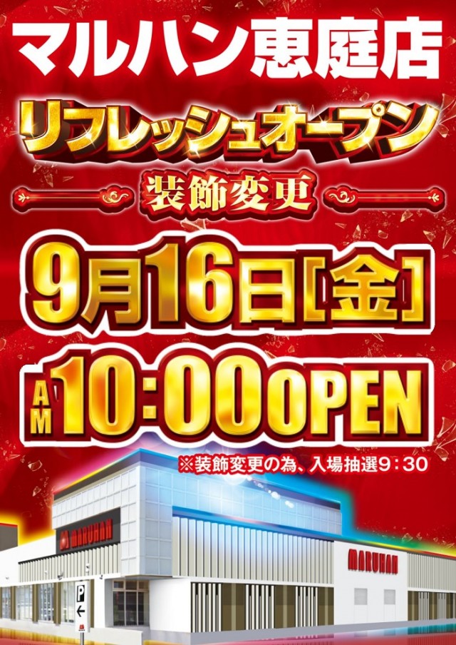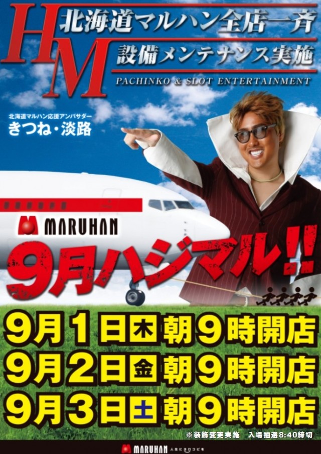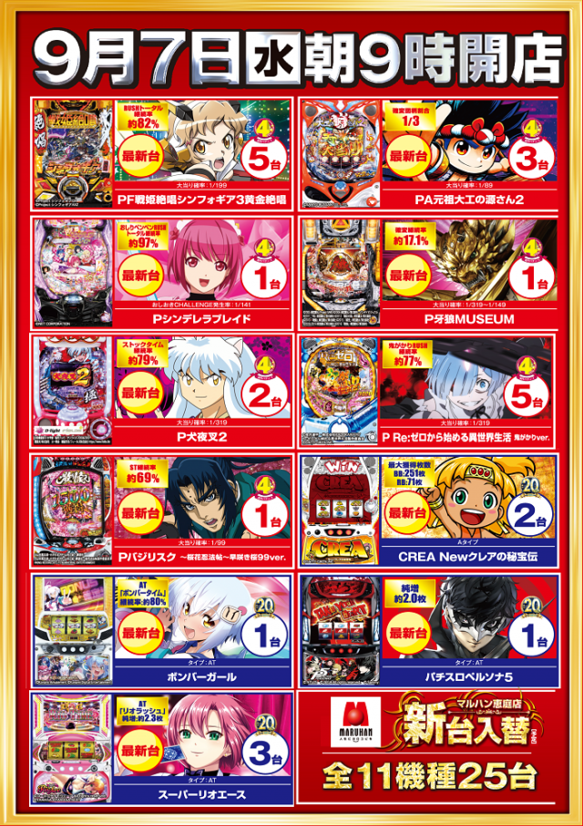 9月7日(水)9時開店★新台入替&装飾変更※入場抽選8:40