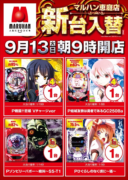 9月13日(火)新台入替★9時開店