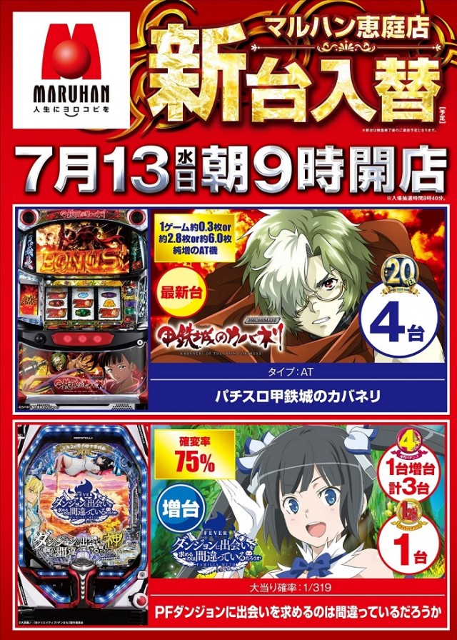 7月13日(水)★新台入替★ 朝9時開店