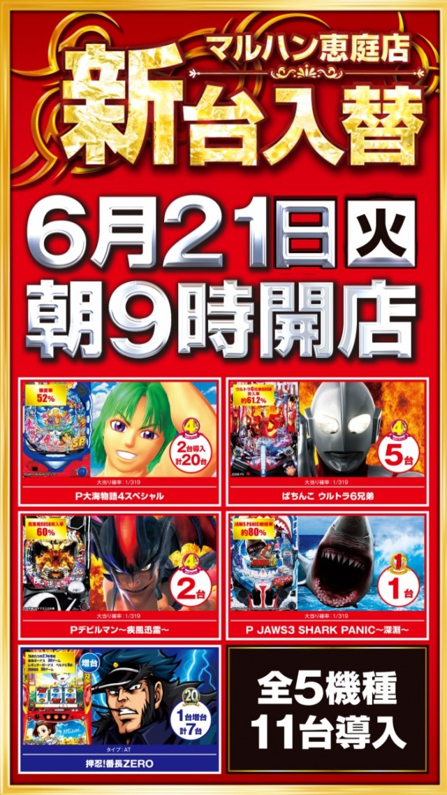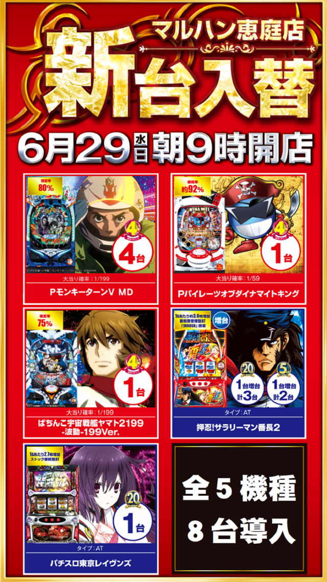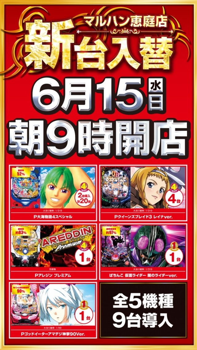 7日(火)新台入替&装飾変更★9時開店★入場抽選8:40開始