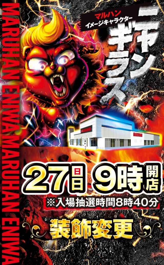 本日27日(日)装飾変更!朝9時開店♪入場抽選8:40予定
