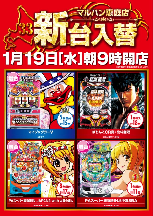 明日1月19日(水)★新台入替★朝9時開店