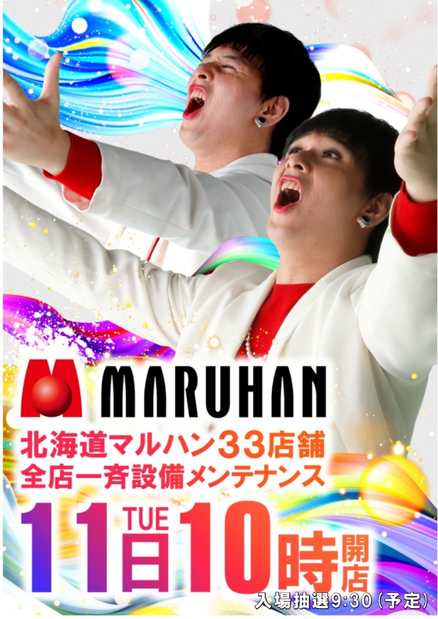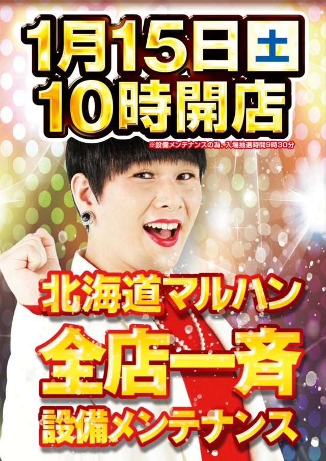 「マルハン恵庭店」15日(金)設備メンテナンス★朝10時開店