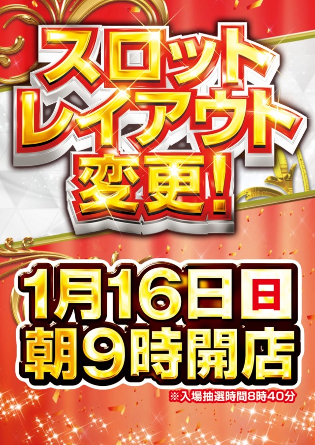 16日スロットレイアウト変更★朝9時開店♪