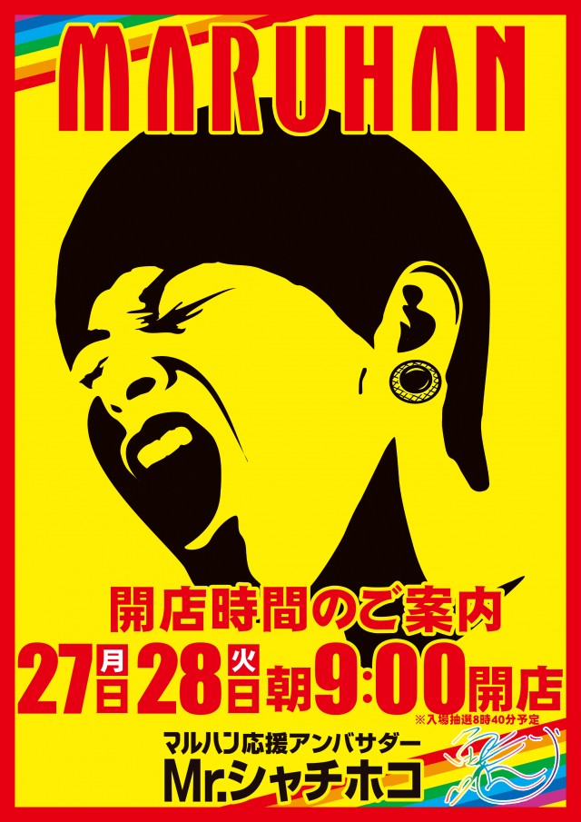 本日27日(月)朝9時開店!入場抽選8:40(締切)