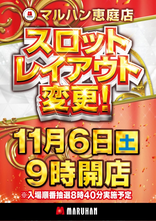 明日6日(土)スロットレイアウト変更★朝9時開店