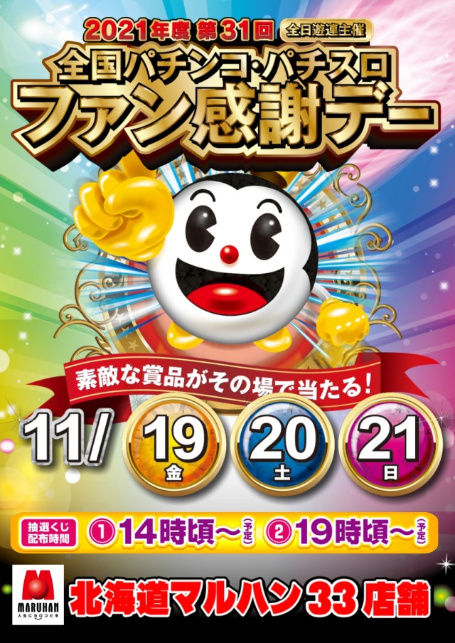 明日19日~21日の3日間はファン感謝デー!朝9時開店♪