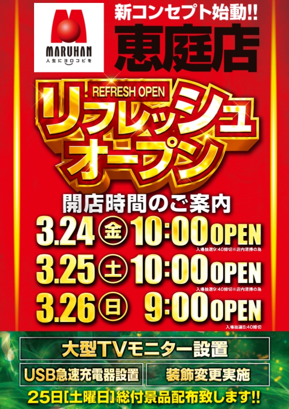 本日9時開店!入場抽選8:40締切★リフレッシュオープン★