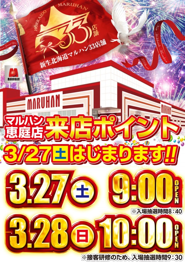明日3月27日(土)朝9時開店!来店ポイントはじまります!