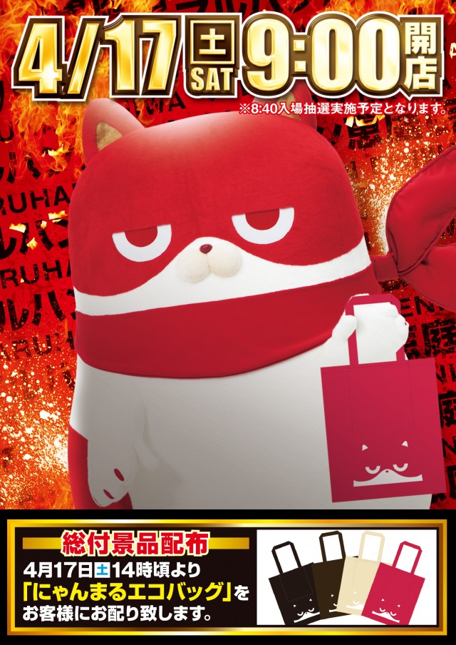 明日17日(土)朝9時開店★ にゃんまるエコバッグ配布★