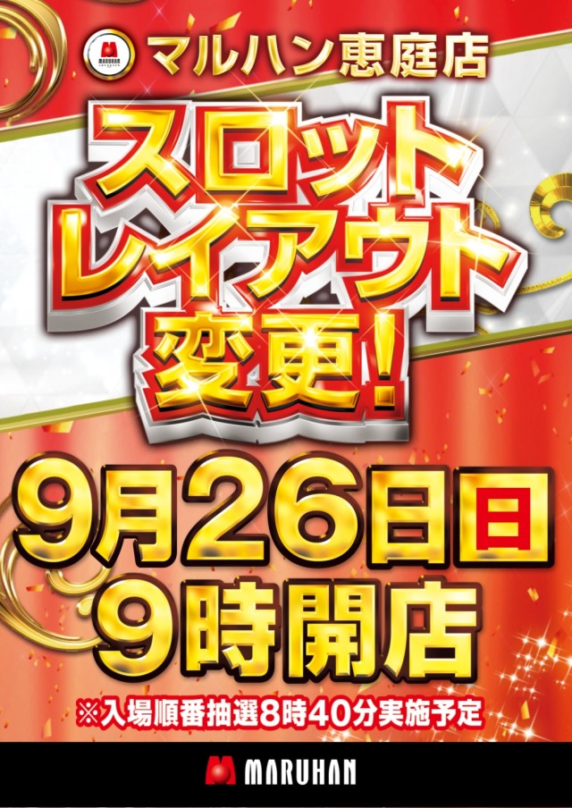 明日24日(木)新台入替 朝9時開店 入場抽選8:40
