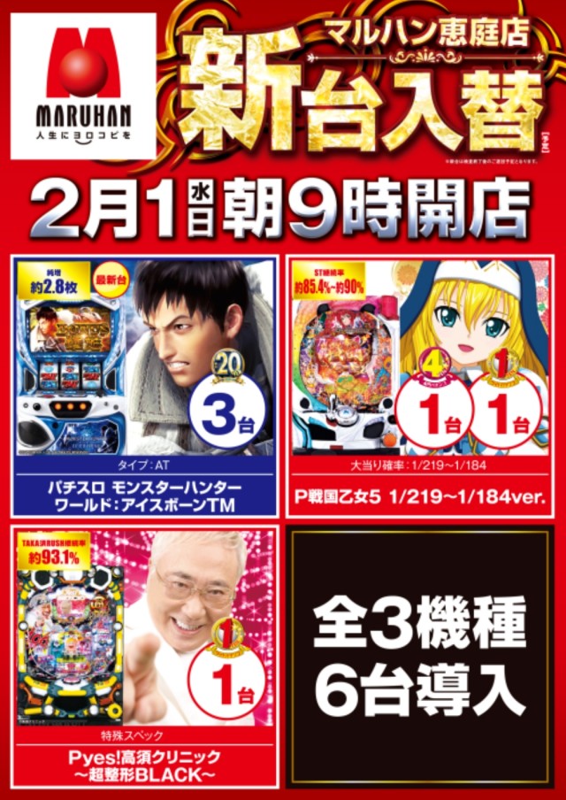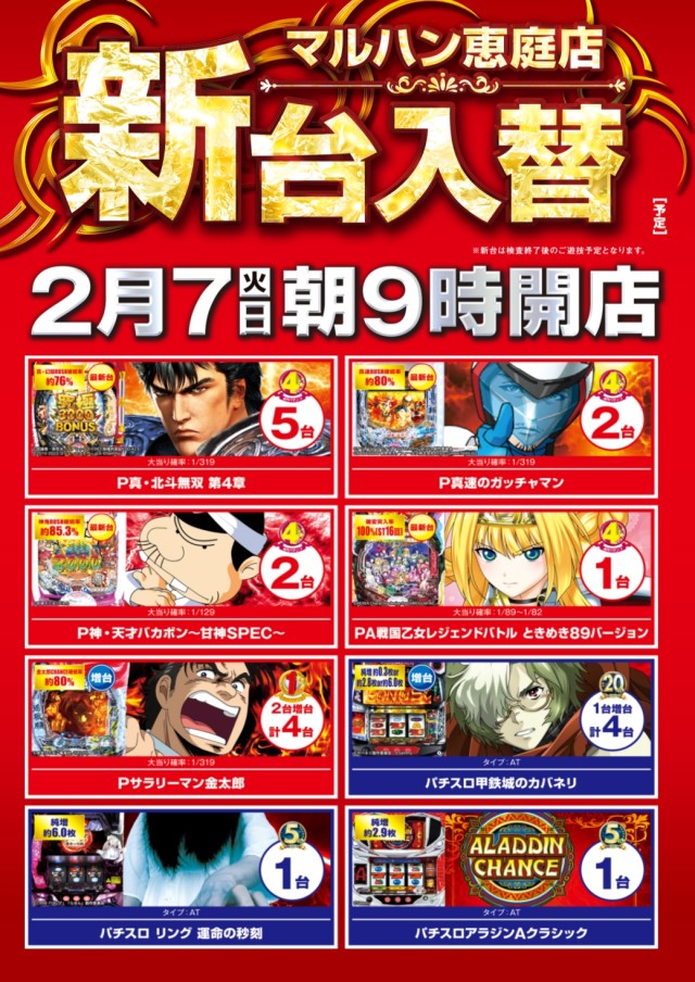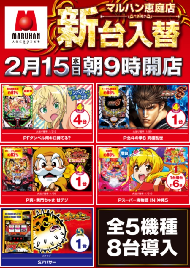 本日15日(水)朝9時開店!★新台入替★