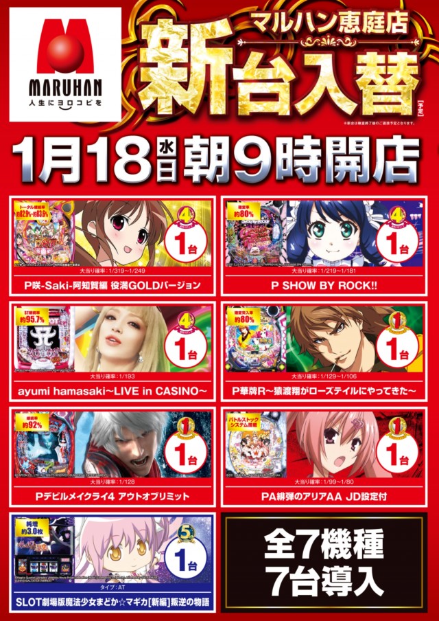 18日(水)朝9時開店!★装飾変更の為★新台入替★