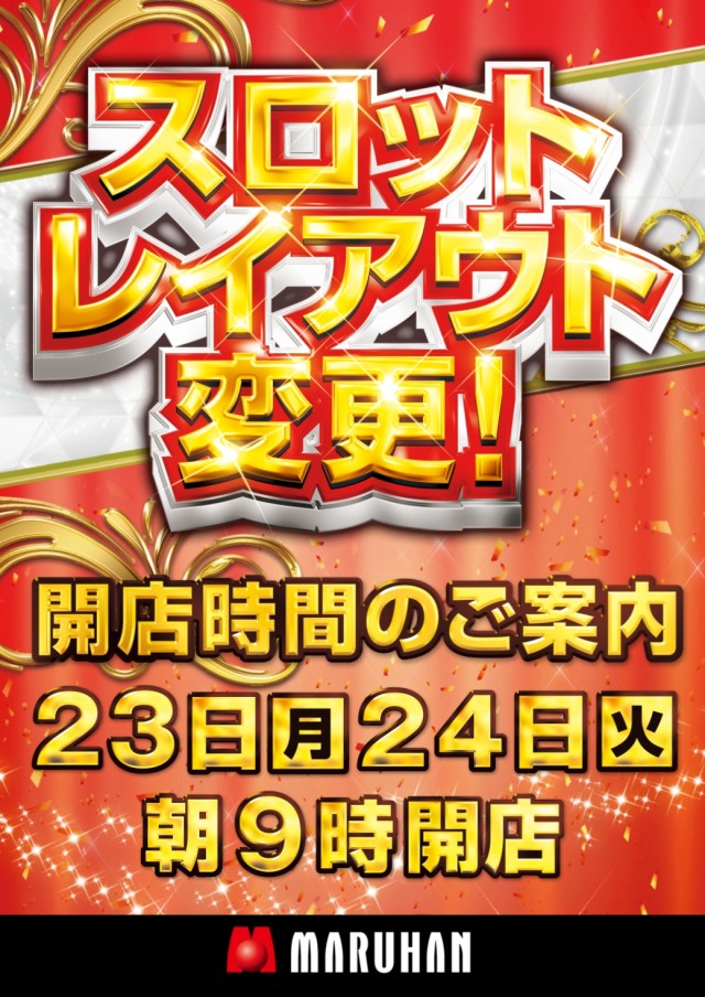 23日(月)朝9時開店☆スロットレイアウト変更☆
