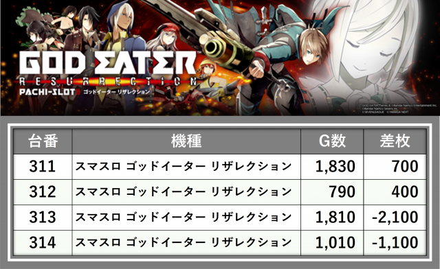 厳選された取材対象機種をはじめ、その他スロット全体から好記録が飛び出した!プレイヤーが楽しんだ1日を下記データにて振り返ってみて欲しい。