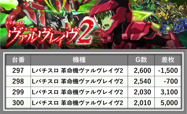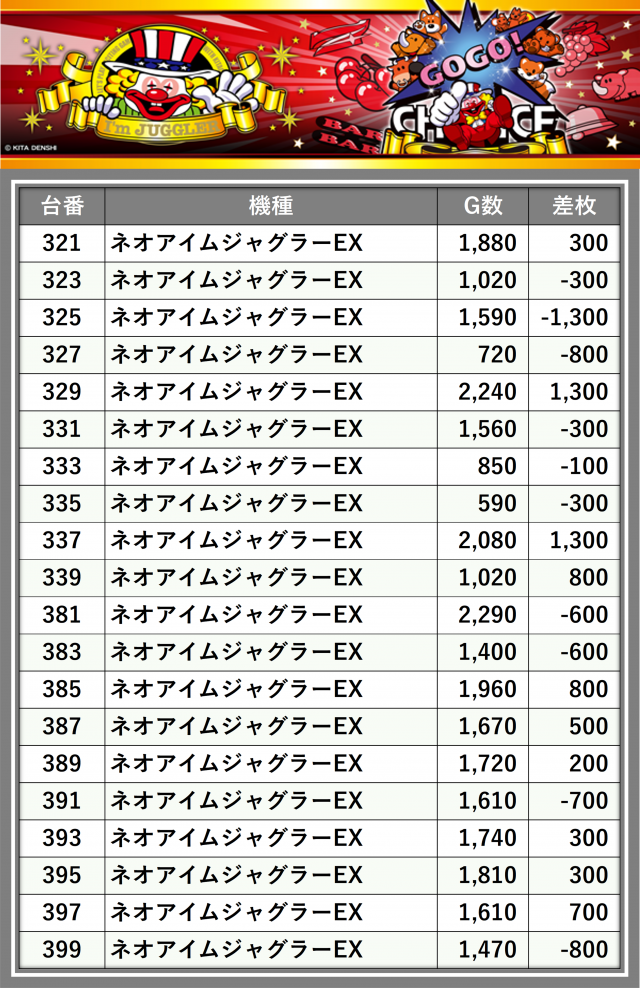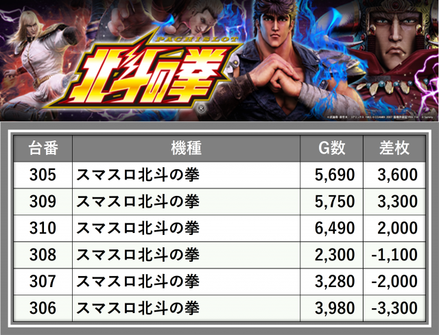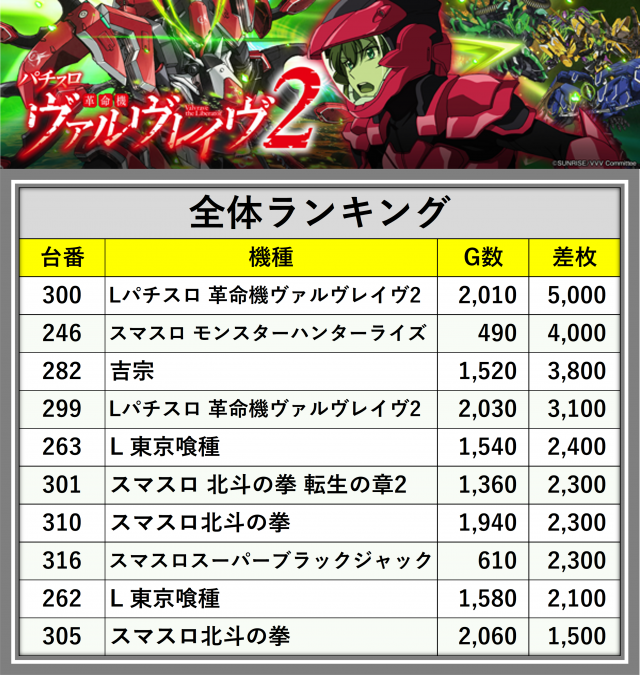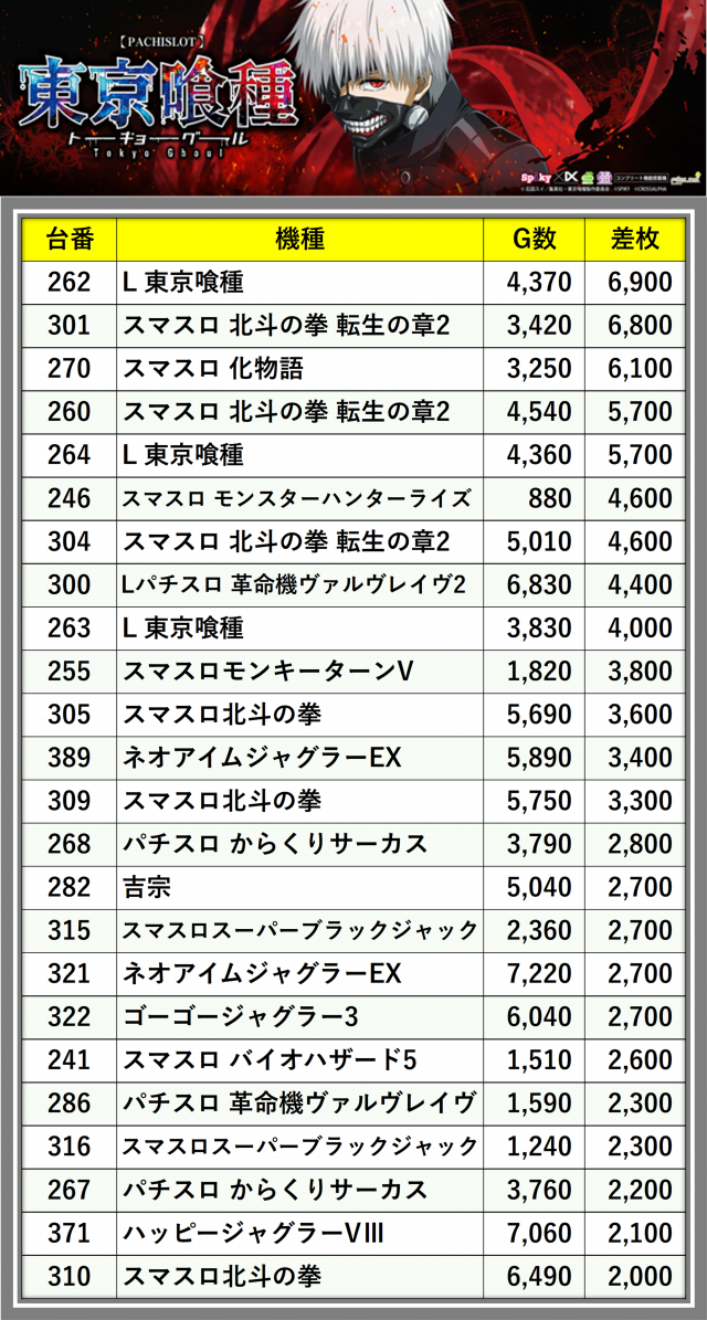 ※差枚数順に掲載しています