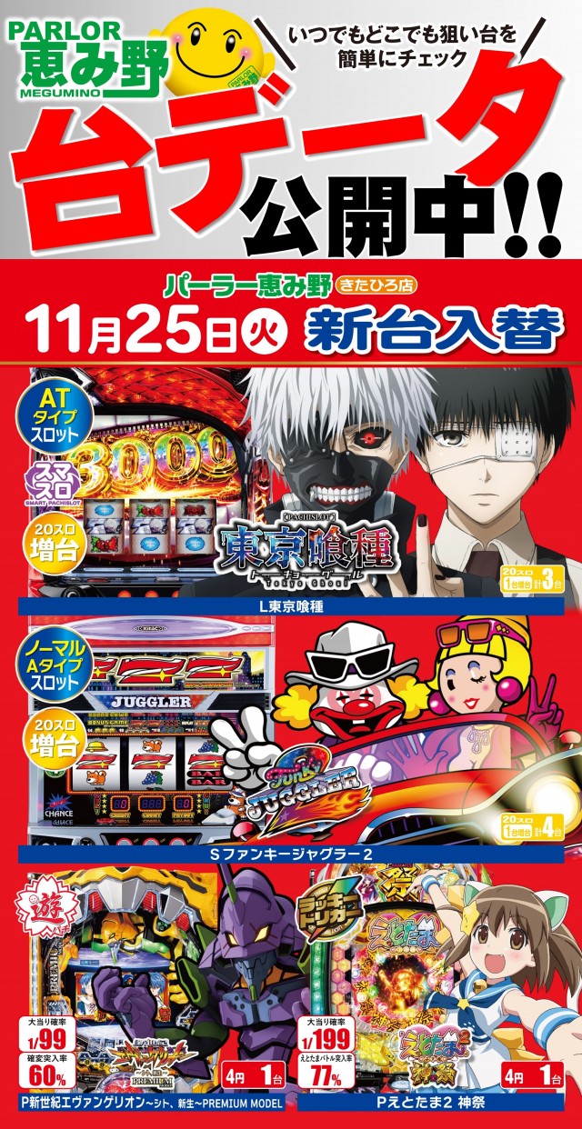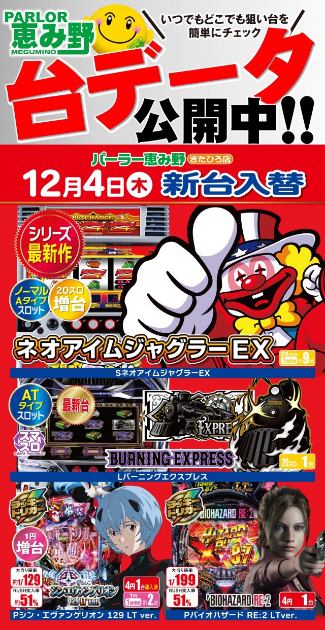 本日新台入替★新台4機種導入予定★朝9時開店★