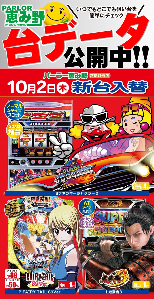 本日朝9時開店!今週の新台3機種導入済&台データ公開中♪