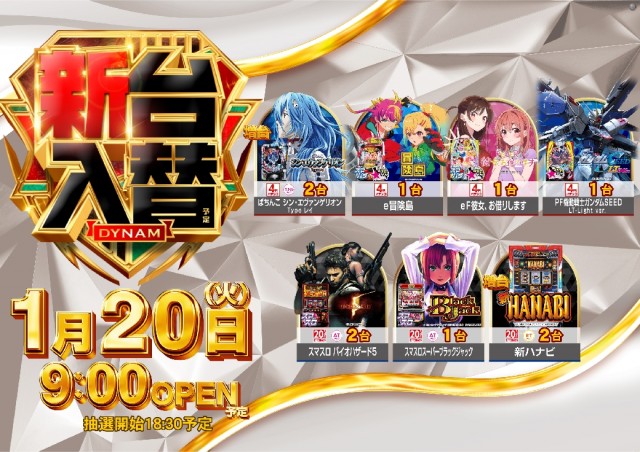 1月20日(火)新台入替(予定)
