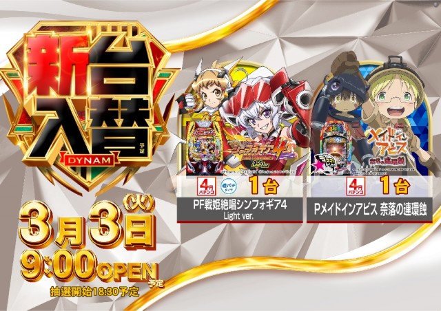 3月3日(火)新台入替(予定)