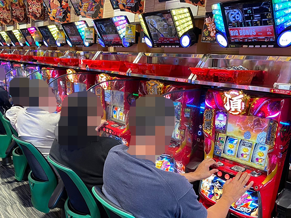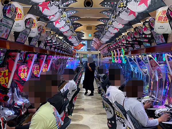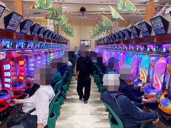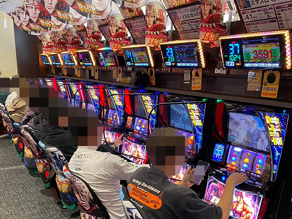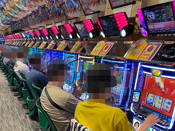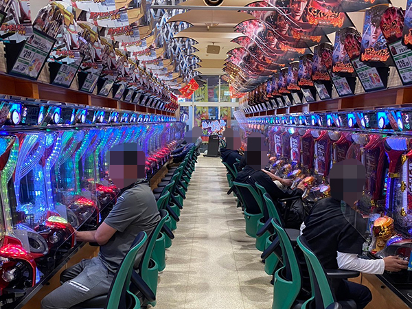 取材時は多くのプレイヤーが来店。パチンコ・パチスロともに、様々な機種が好評を得ていた。