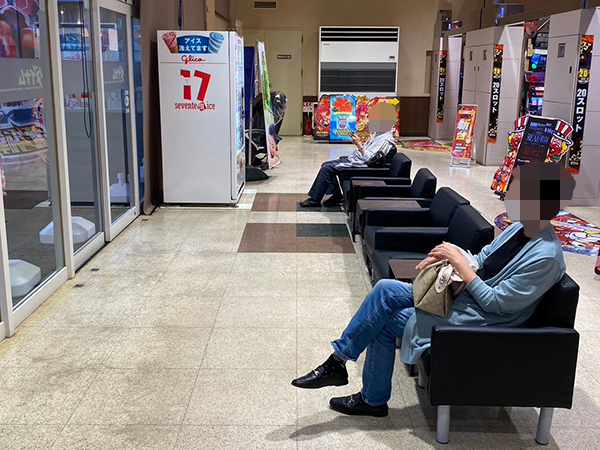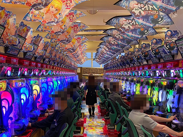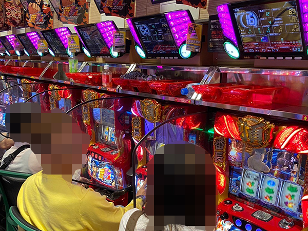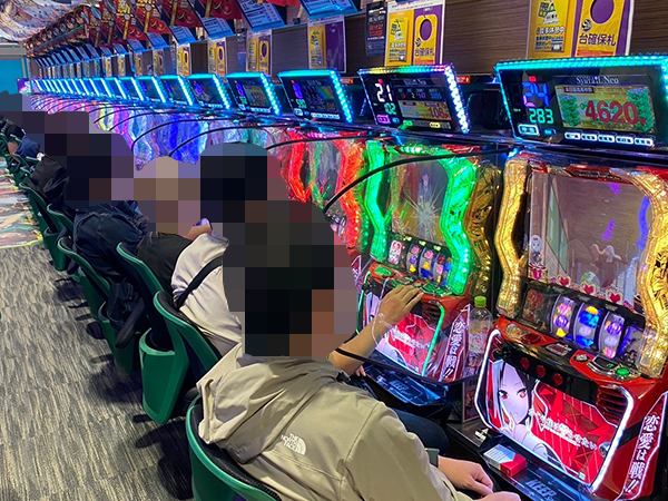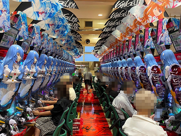 14時ごろの4円パチンコを見てみると「ぱちんこ シン・エヴァンゲリオン Type レイ」や「P大海物語5」、「P大海物語4スペシャルBLACK」が活況。プレイヤーの満足そうな表情から、充実した時間を過ごしていたことがうかがえる。
