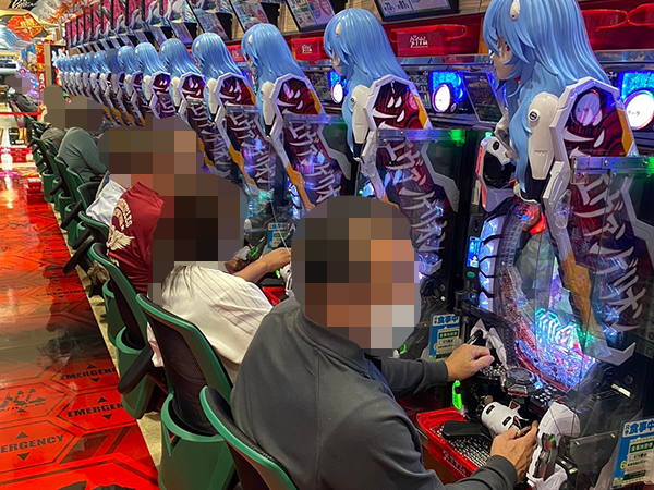 14時ごろの4円パチンコの様子を見ると「P大海物語5」や「ぱちんこ シン・エヴァンゲリオン Type レイ」が大盛り上がり。機種性能を存分に発揮するプレイヤーを目の当たりにしている。
