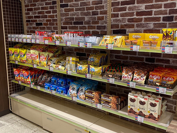 景品コーナーには多彩な銘柄のお菓子が用意されており、スナック好きにはたまらない、充実の品揃えとなっている。