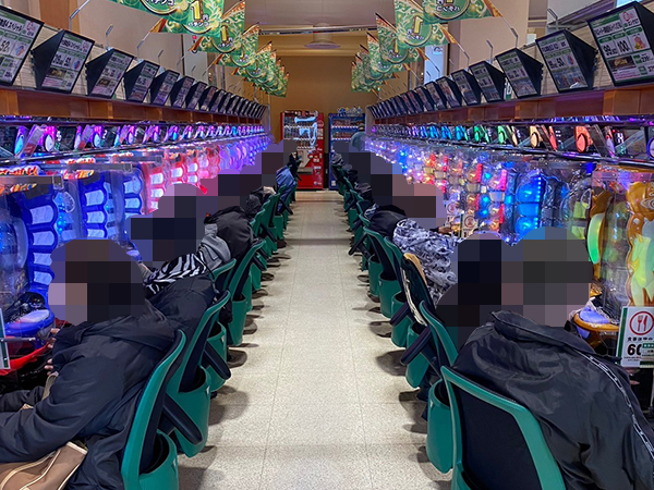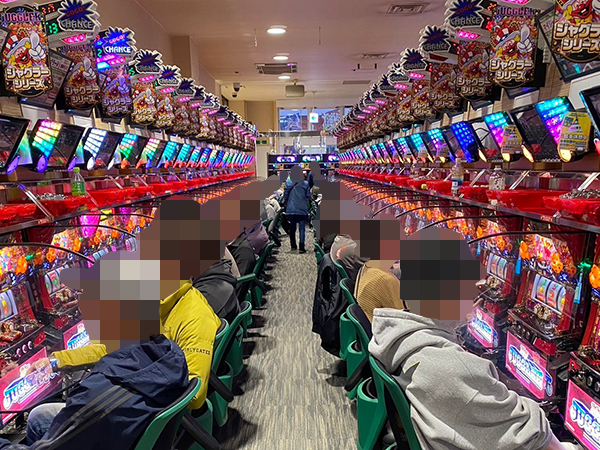 取材時は既に多くのプレイヤーであふれており、パチンコ・パチスロを問わず楽しげな表情でいっぱいだった。