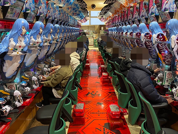 15時ごろの4円パチンコをチェックすると「P大海物語5」や「ぱちんこ シン・エヴァンゲリオン Type レイ」が盛況の様子。プレイヤーたちの満足気な表情が印象に残っている。