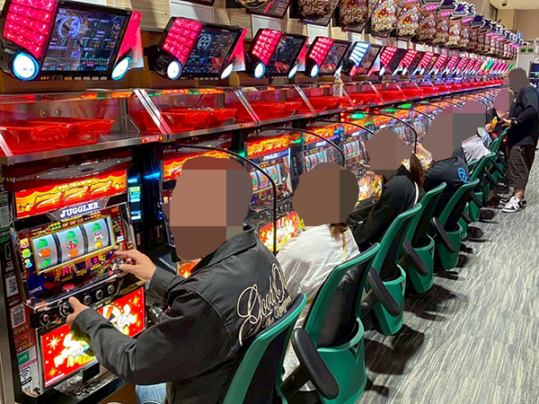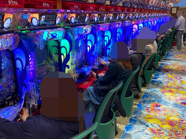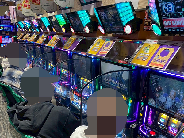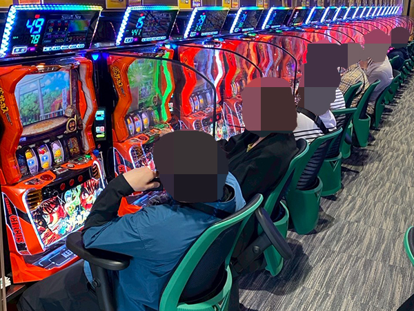 取材時は既に多くのプレイヤーが集結し、パチンコ・パチスロを問わずにぎやかな状況となっていた。