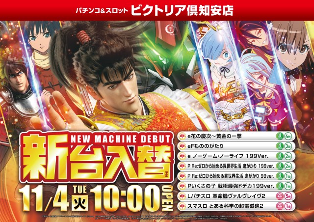 明日11月3日は【新台入替】!あさ10時開店になります!