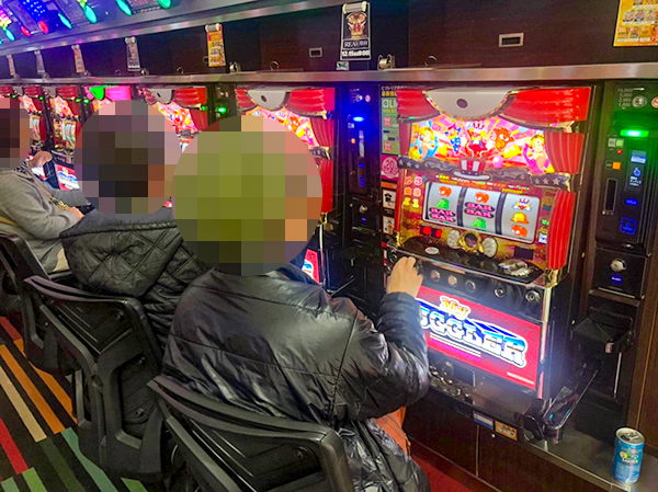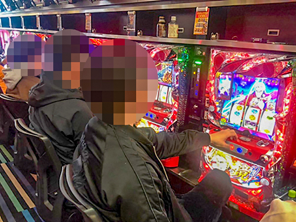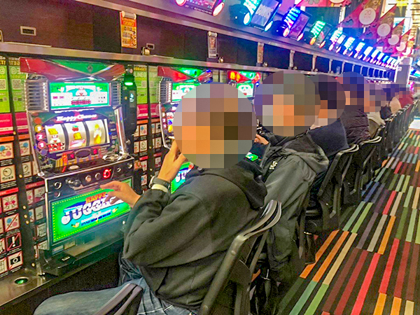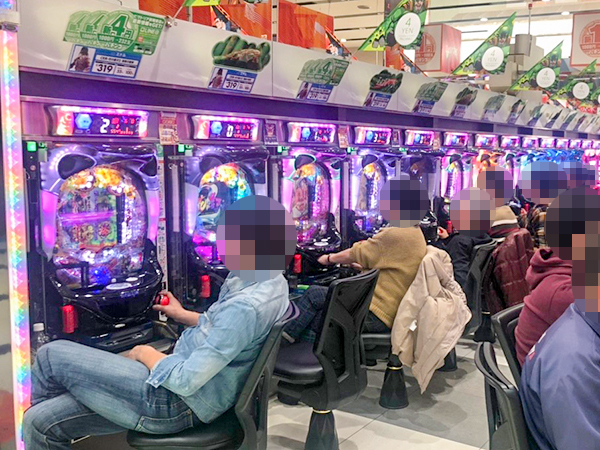 取材時の店内には多くのプレイヤーが来店。パチンコ・パチスロともに、様々な機種が支持されていた。