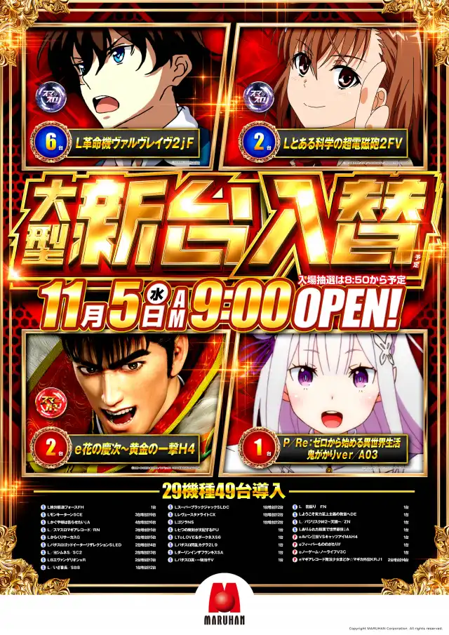 27日[金]北海道マルハン全店一斉装飾変更!朝9時開店!