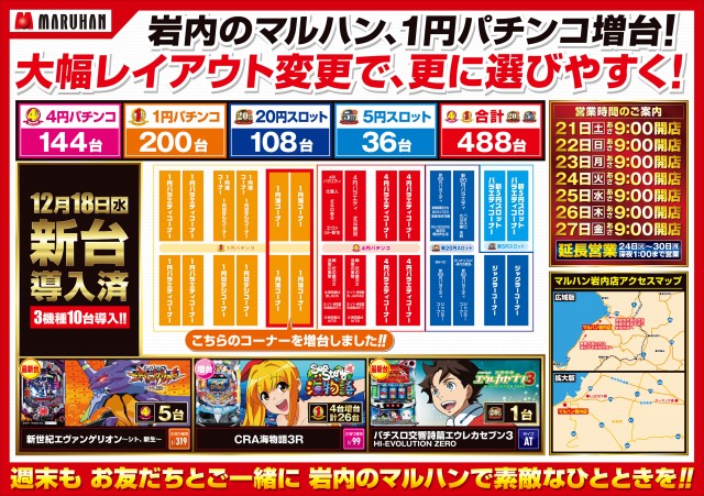 貸玉1玉4円:144台 貸玉1玉1円:180台 |