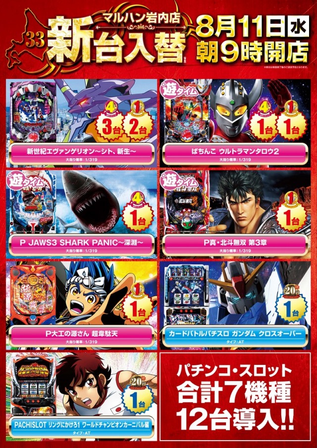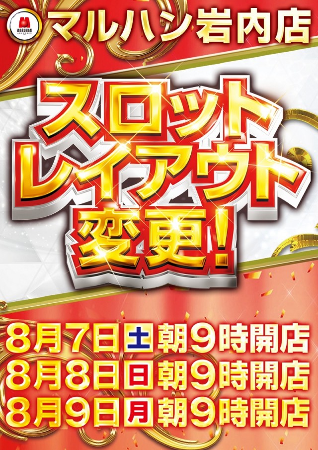 8月7日[土]朝9時開店!! スロットレイアウト変更♪