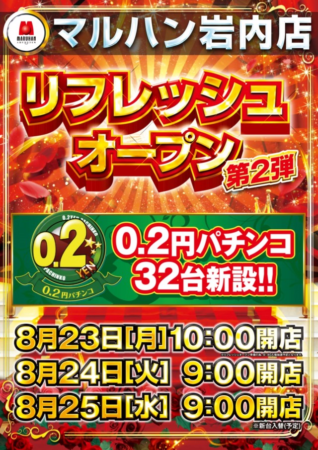 本日 8月25日[水] 新台入替♪朝9時開店!