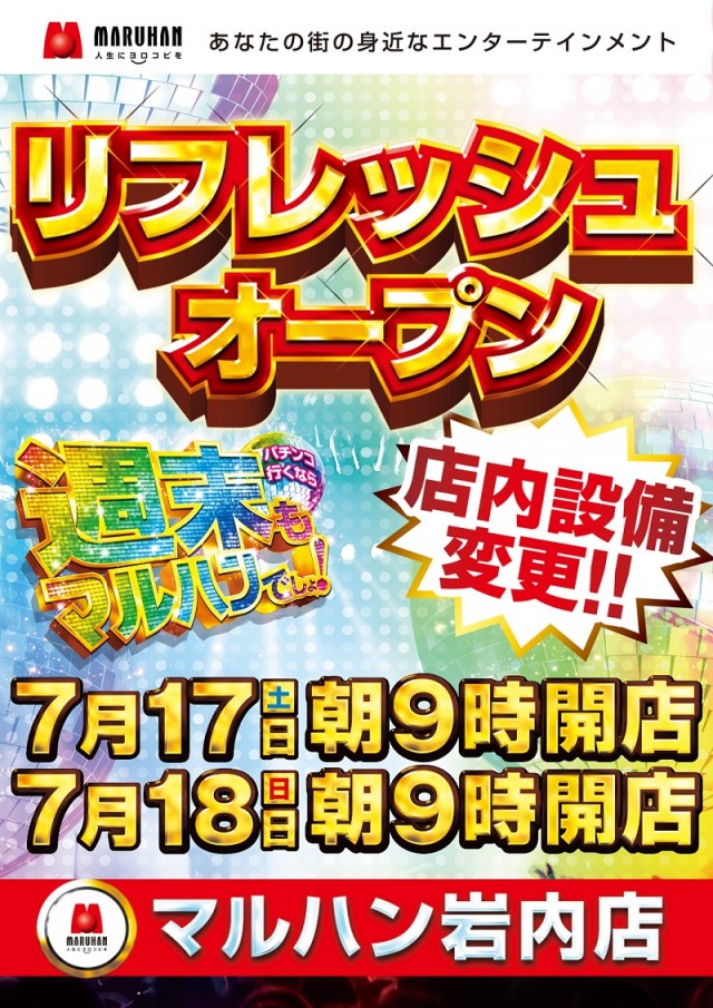 7月17日[土]リフレッシュオープン♪朝9時開店!!