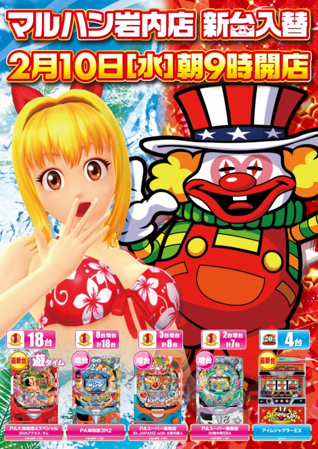 2月10日【水】新台入替!朝9時開店♪
