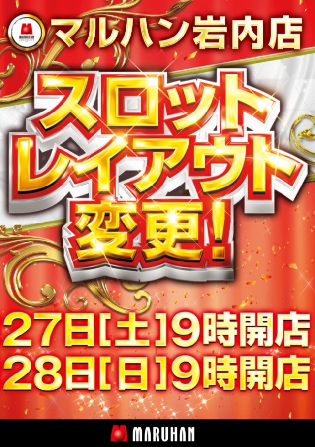 2月27日【土】スロットレイアウト変更♪ 朝9時開店!