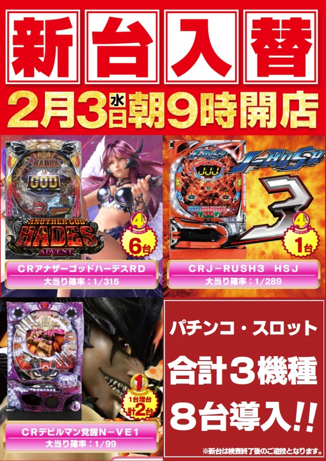 2月3日【水】新台入替!朝9時開店♪